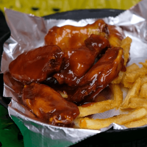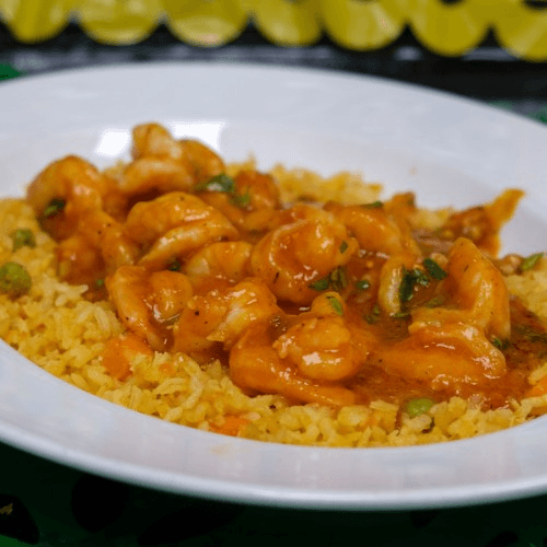 Spicy, yet delicious shrimp cooked in our homemade sauce blend served over a bed of rice with a side of lettuce