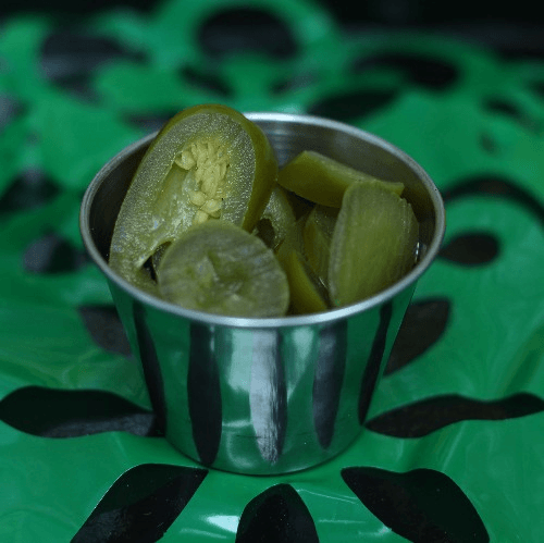 A generous portion of fried pork cooked with your choice of green, red or orange salsa served with a side of rice and beans and an order of tortillas
