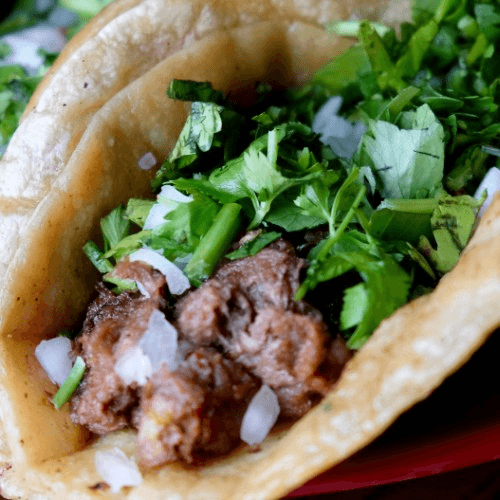 Corn tortilla dipped in comsomé with mozzarella cheese, marinated shredded beef, onions and cilantro served with extra consomé to add the fun of dipping