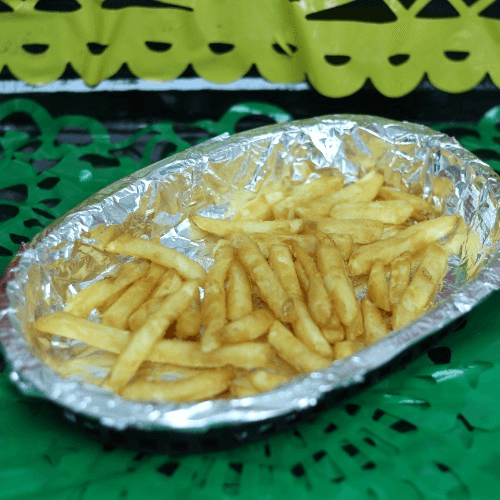 Nice portion of fries topped with queso blanco, your choice of meat and pico de gallo